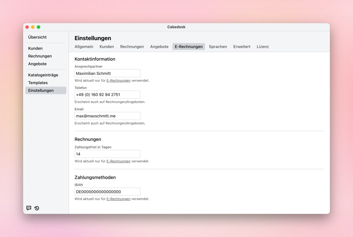 Cakedesk erhält Unterstützung für E-Rechnungen (XRechnung). Diese Funktion ist für Nutzer in Deutschland verfügbar.