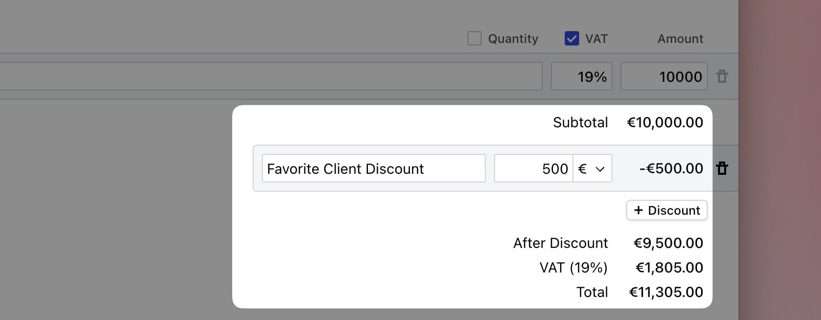 Fixed discounts are deducted from the total amount of the invoice.